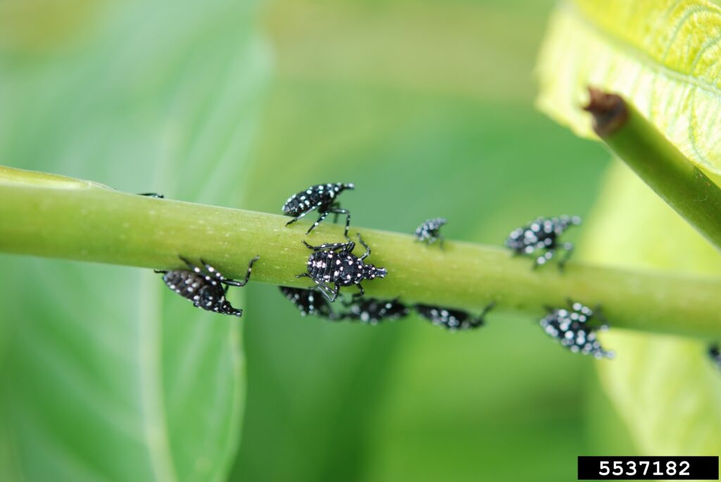 Spotted Lanternfly nymphs during one of the first three instar stages © Lawrence Barringer, Pennsylvania Department of Agriculture, Bugwood.org