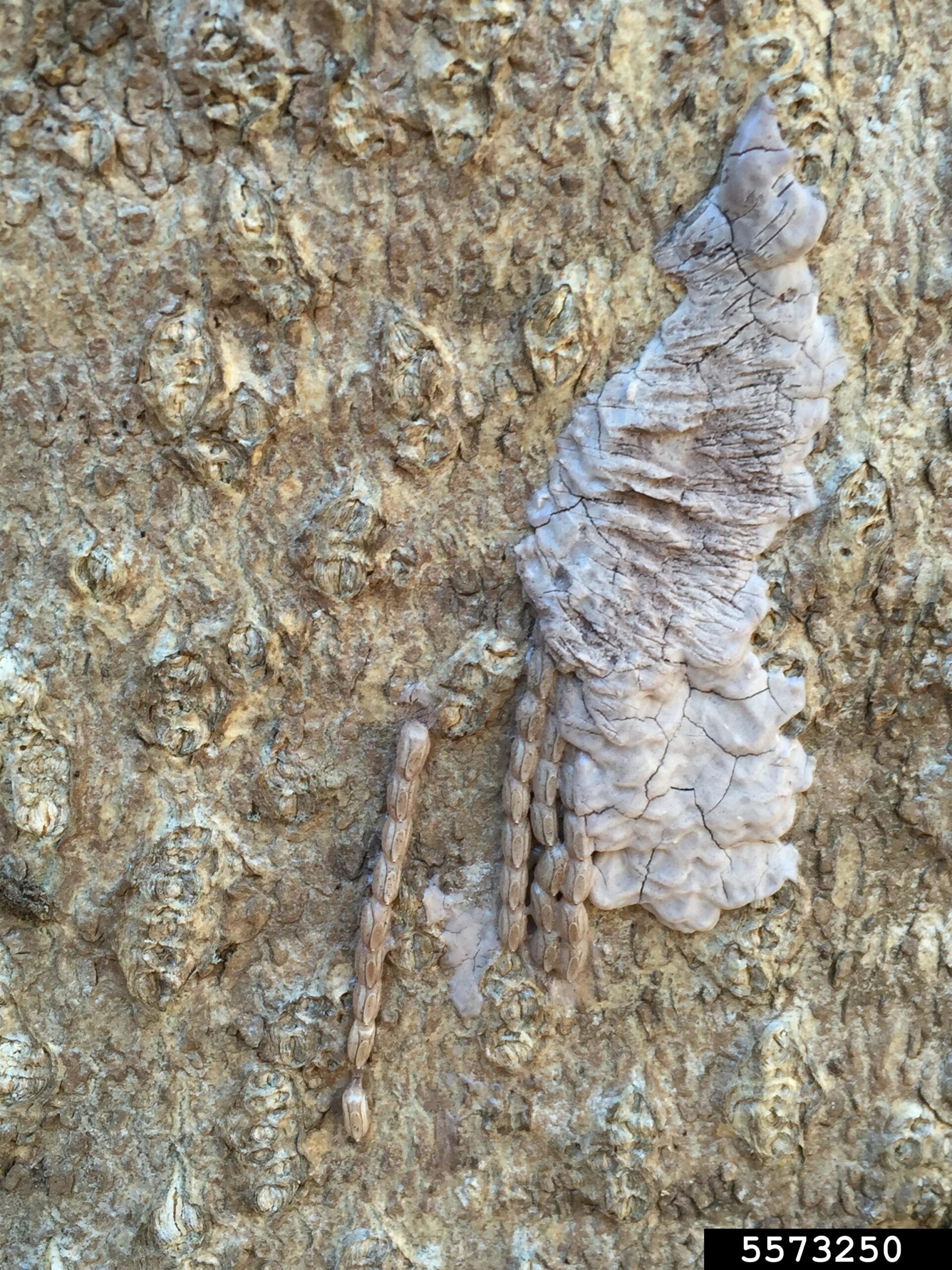 Spotted Lanternfly egg masses© Emelie Swackhamer, Penn State University, Bugwood.org